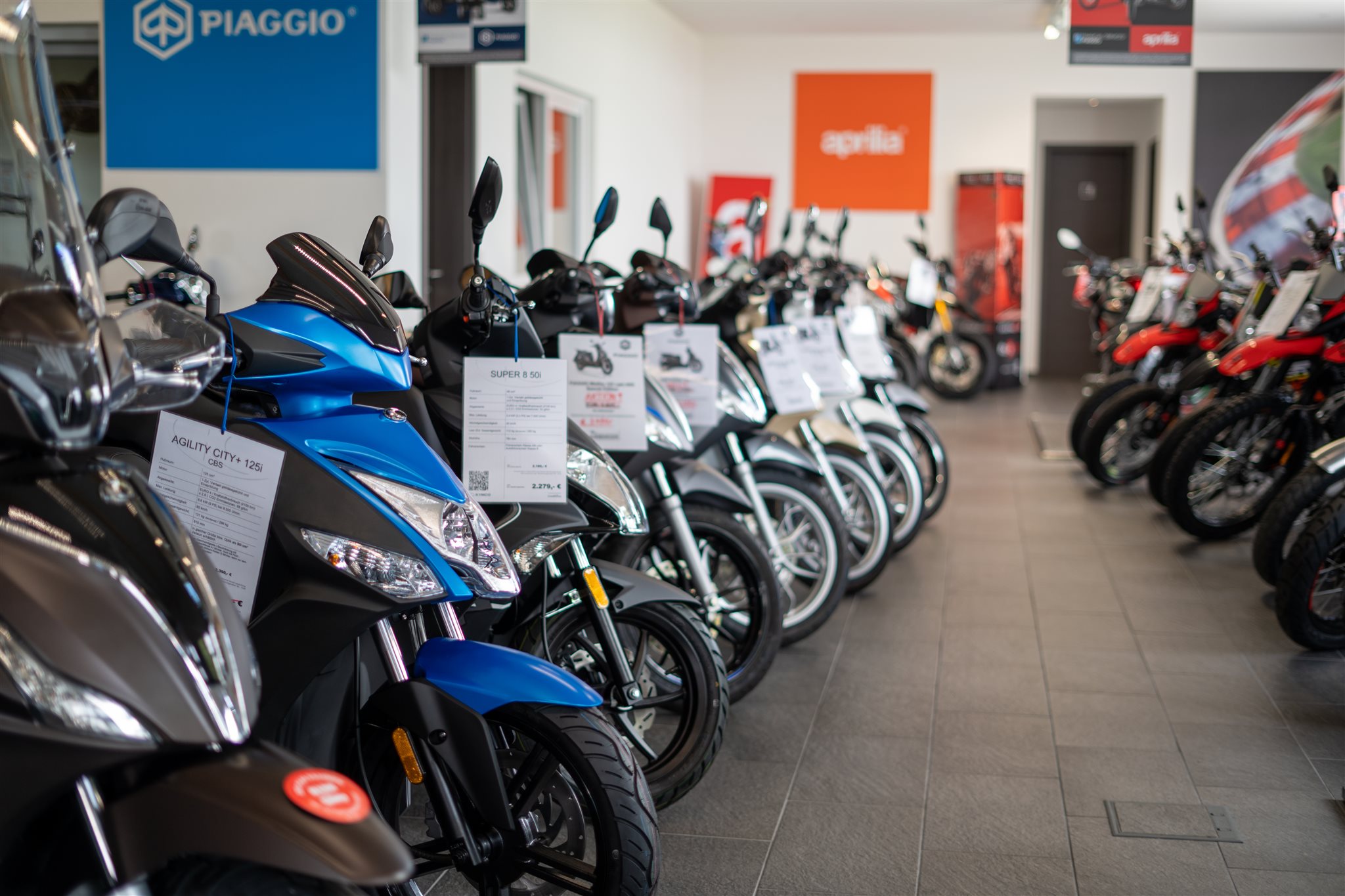 ca. 1000 m² präsentieren wir die Marken Aprilia, Hyosung, Kawasaki, Kymco,